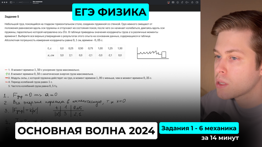 Подготовка к ЕГЭ 2026. Основная волна ЕГЭ по физике 2024. Задания 1 - 6 (механика) за 14 минут