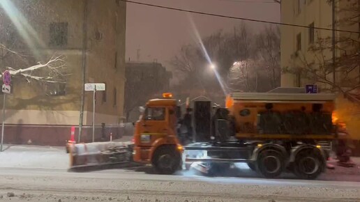 Волгоградские дорожники всю ночь боролись со снегопадом