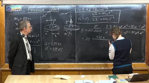 Задача на опр. кол-ва оборотов в мин., которое будет делать платформа, если человек стоящий на ней опустит руки, уменьшив при этом свой МИ