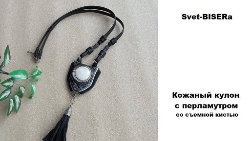 Кожаный кулон с перламутром со съемной кистью