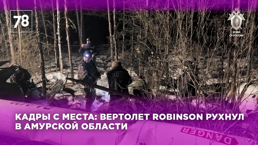Кадры обстановки на месте падения вертолета Robinson в Амурской области