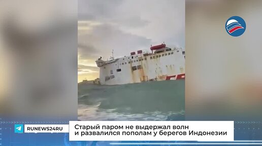 Старый паром не выдержал волн и развалился пополам у берегов Индонезии