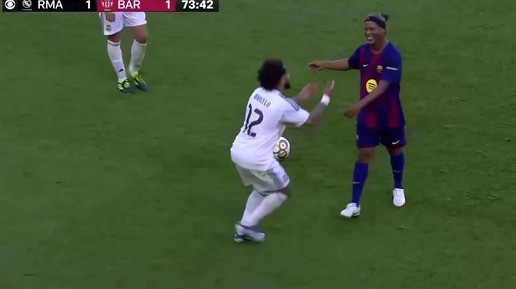 «Реал Мадрид» — «Барселона»: Марсело и Роналдиньо разыграли эпизод «Эль Класико» на матче легенд