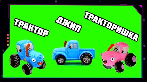 СИНИЙ ТРАКТОР, ДЖИП, ТРАКТОРИШКА анимация на зелёном экране. Хромакей футаж футаж GREEN SCREEN.