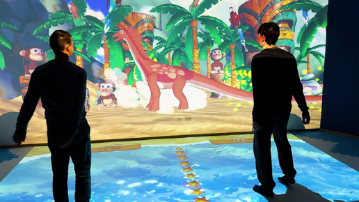 Игра «Прыжок через динозавра» для интерактивной стены и пола в пакете «Перепрыгни».