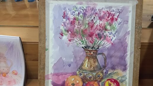 Букетик на просвет, кувшин и фрукты в зимнее время в клубе "Творчество"