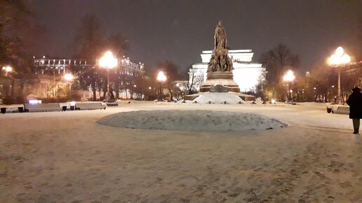 Санкт-Петербург вечерний, прогулки по Невскому проспекту. Памятник Екатерине. Холодно, скользко, но красиво.