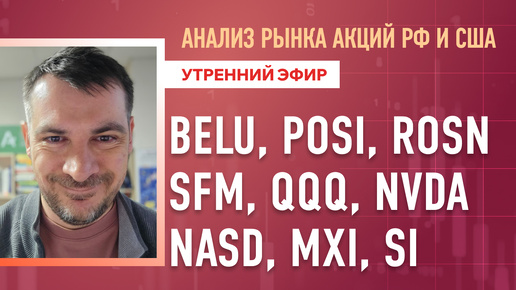 Анализ рынка акций РФ и США/ BELU, POSI, ROSN, SFM, QQQ, NVDA/ NASD, MXI, SI