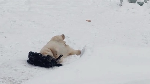 Думка в Большереченском зоопарке наслаждается зимними днями