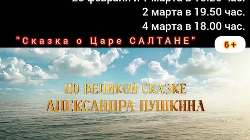 Приглашаем на фильм "Сказка о царе САЛТАНЕ" 2D, 6+, 110 мин. Пушкинская карта #кинозалДКям