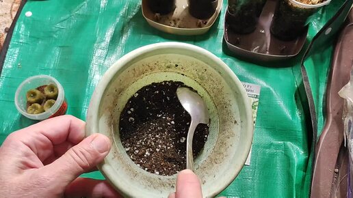 Посадка Петунии мини Пендолино F1 Пале Дарк Вэйн (#Жанна26) на минерало-ватной пробке в стаканчик 100 мл с универсальным грунтом.