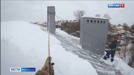 На расчистку костромских крыш вышли бригады промышленных альпинистов