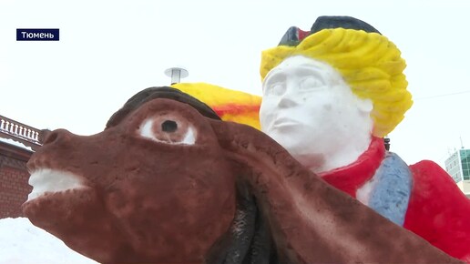 Снежную скульптуру Конька-Горбунка установили на пешеходной улице в Тюмени