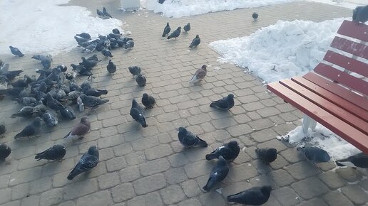 Голуби очень вкусно и задорно завтракают сегодня!!!