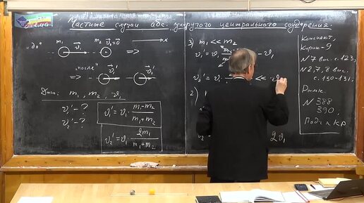 Сталкивание шаров разной массы. Легкий шар сталкивается с тяжелым.