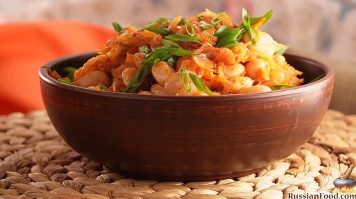 Интересный гарнир или полноценное блюдо в пост. Тушёная квашеная капуста с фасолью