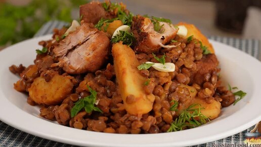 Обильно и сытно. Мясное рагу с картошкой и чечевицей