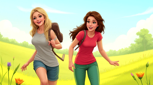 Видео из рисунка, рисунок: Девушки на летнем поле и барсук в норке. Песня.
