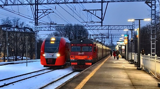 ЭТ2М 109 и ЭС2Г 021/028 "Ласточка" на станции Ланская