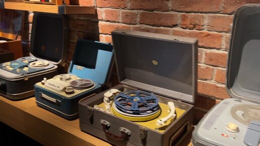 Коллекция магнитофонов в Государственном музее Владимира Высоцкого (на Таганке) (Москва).