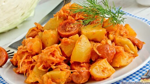 Доступные ингредиенты и замечательный вкус. Капуста с картошкой и сосисками