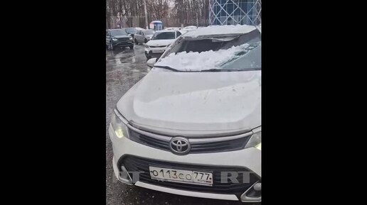 Глыба льда со снегом упала с моста на проезжающую машину в Химках