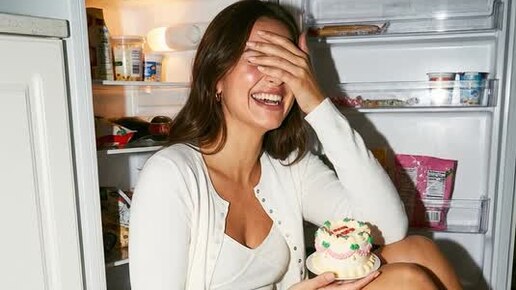 Красавица с перекусом у холодильника