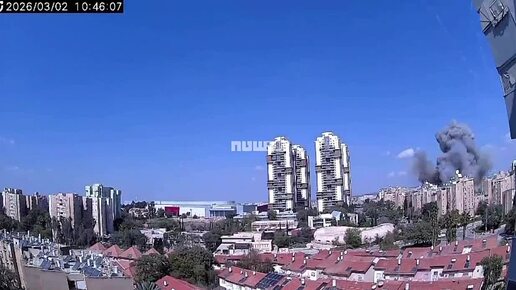 Огромный столб дыма поднялся на месте прилёта иранской ракеты в израильской Беэр-Шеве