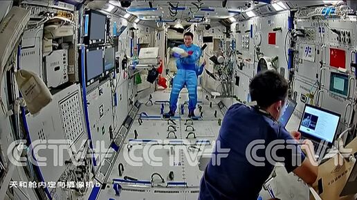 Видео работы экипажа 9-й длительной экспедиции на китайской космической станции "Тяньгун"