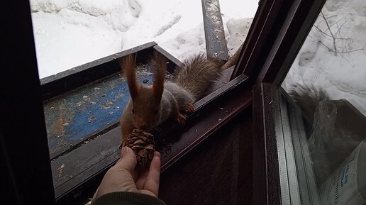 Утро с дикими белками.Карта на корм зверятам2202 2062 6013 7323