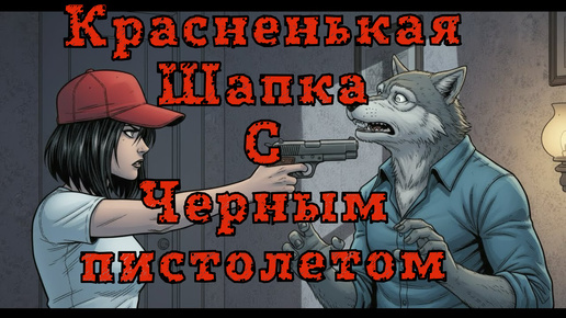 Красненькая шапка с черным пистолетом
