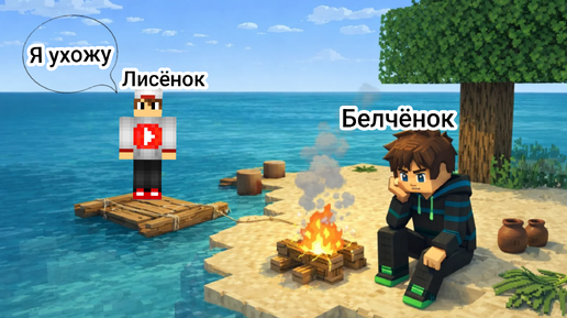 Выжили на острове 28 дней с Лисёнком день-24 в Майнкрафт {Белчёнок}