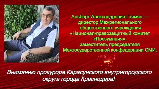 Вниманию прокурора Карасунского внутригородского округа города Краснодара!