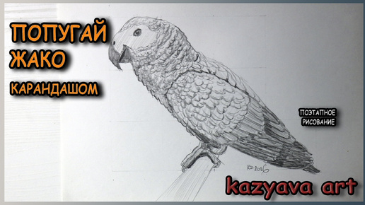 Как нарисовать попугая ЖАКО карандашом шаг за шагом.