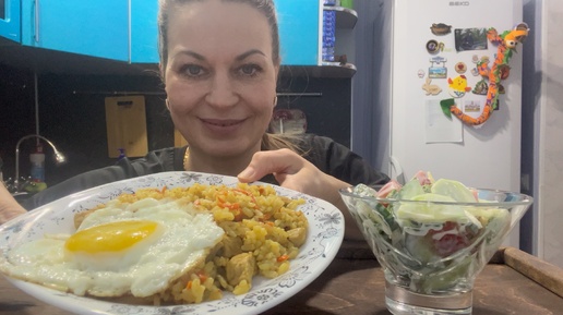 МУКБАНГ ПЛОВ С ЯИЧНИЦЕЙ/САЛАТ С ОВОЩАМИ/MUKBANG ЕДА ОБЖОР