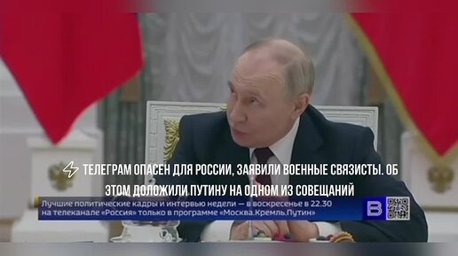 ⚡️ Телеграм ОПАСЕН для России, заявили военные связисты. Об этом доложили Путину на одном из совещаний