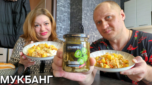 Мукбанг - тушёная капуста, картофель с мясом | маринованный халапеньо