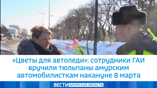 "Цветы для автоледи": сотрудники ГАИ вручили тюльпаны амурским автомобилисткам накануне 8 марта
