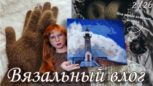 Вязальный влог🧶 | мои процессы за февраль, первая алмазная мозаика, покупочки, вышивка.