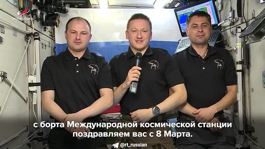 Российские космонавты Сергей Микаев, Сергей Кудь-Сверчков и Андрей Федяев с борта МКС поздравили российских женщин с 8 Марта