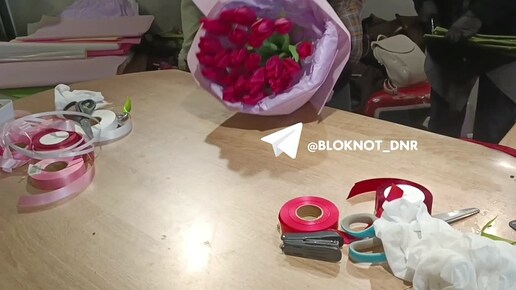 Тем временем в центре Донецка припоздавшие мужчины вовсю закупаются цветами для любимых