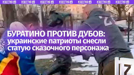 Декоммунизировали Буратино — двое украинцев сломали скульптуру в Киеве