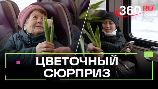 ЦППК подарили тюльпаны пассажирам в электричках