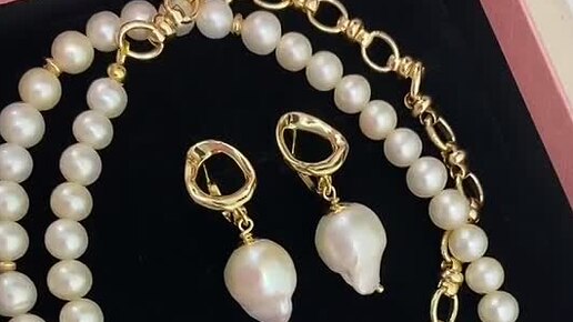 Комплект из натурального жемчуга, ручной работы,от российского бренда CHIARA Lux jewellery