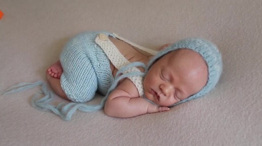 Бэки новорожденных малышей в голубом комбезике.