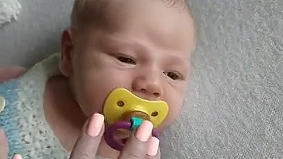 Домашняя съемка новорожденных в Кирове в голубом комбезике.