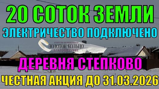 АКЦИЯ! Продается земельный участок 20 соток с подведённым электричеством в д. Степково, вблизи города Карабаново, Александровский район.