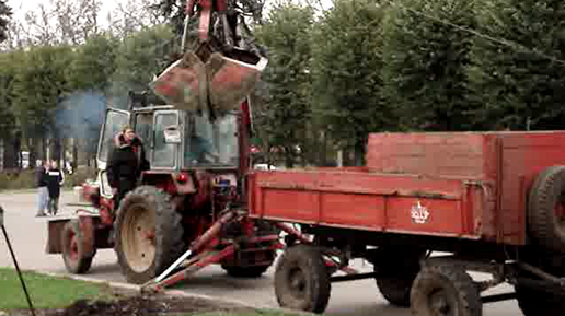 Древнее видео: грейферный погрузчик на ЮМЗ у коммунальщиков