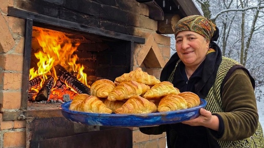 Baking French Croissants in a Village Wood Oven! 🥐❄️ Cozy Winter