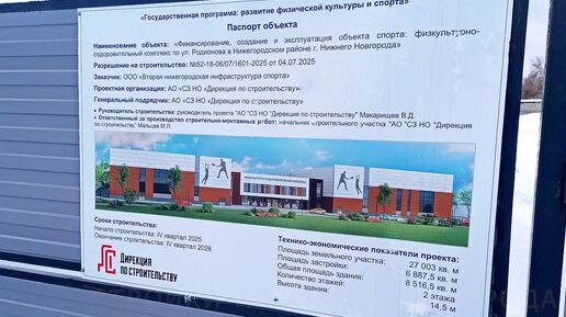 Ход строительство ФОКа. АО "СЗ НО "Дирекция по строительству" || Нижегородский р-он, ул. Родионова || Март 2026